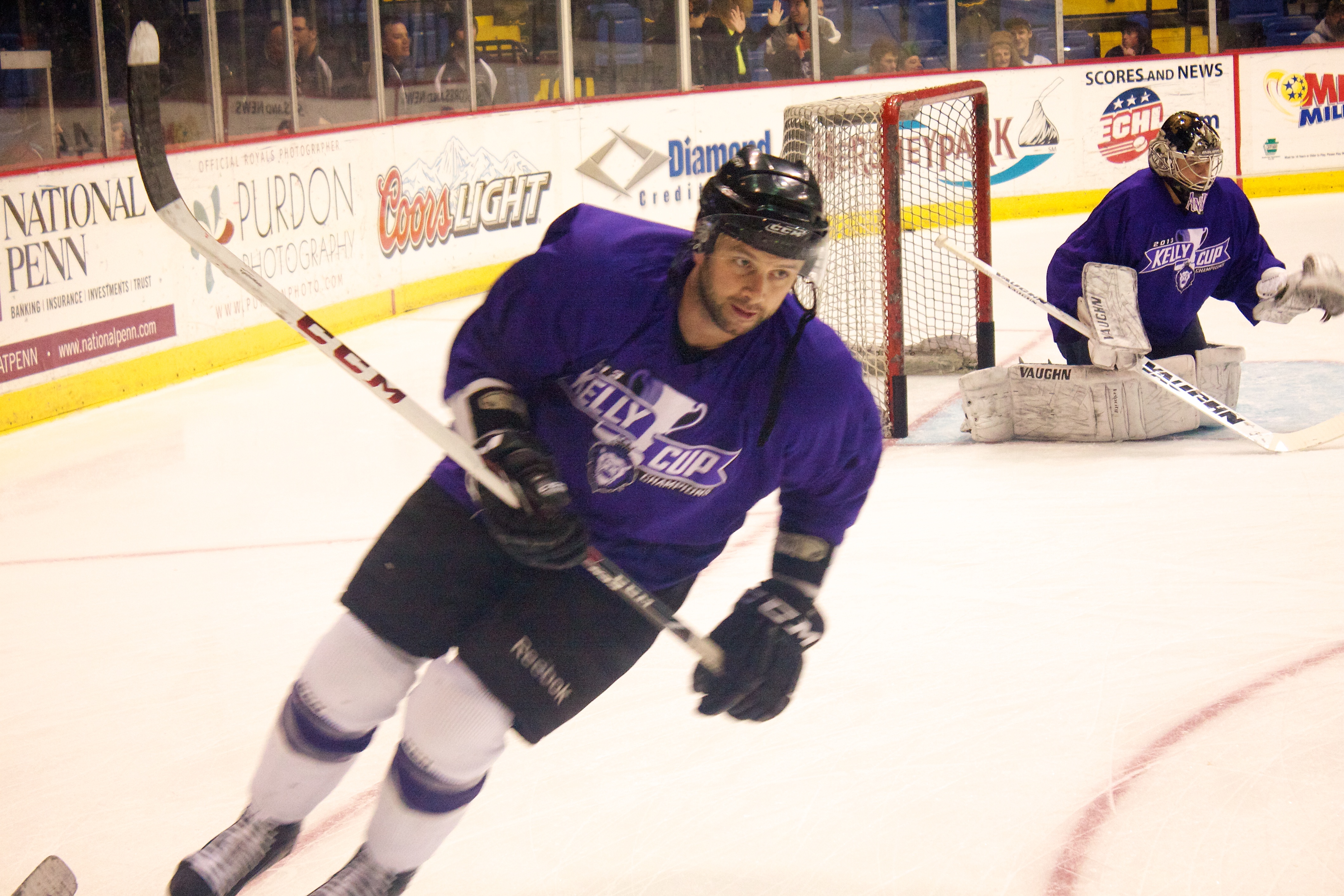 Just 50 miles from Hershey, PA is Santander Arena, home to the ECHL’s Reading Royals. Among the standard male media members is Candice Monhollan who is entering her third season covering Royals hockey for various news outlets. With a Bachelor of Arts in Journalism, Candice is a professional sports writer who still faces dubious stares.